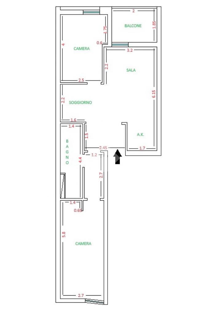 Composto da ingresso, sala, soggiorno, angolo cottura, due camere e bagno. Balcone di circa mq 4.