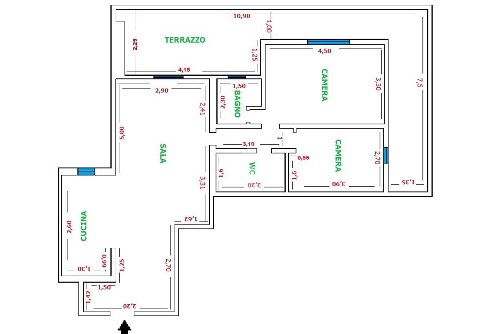 Immobile molto luminoso composto da ingresso, sala con angolo cottura, camera padronale con bagno con finestra, cameretta e bagno. Terrazzo di circa mq 30 che circonda l’appartamento per tutto il suo perimetro.