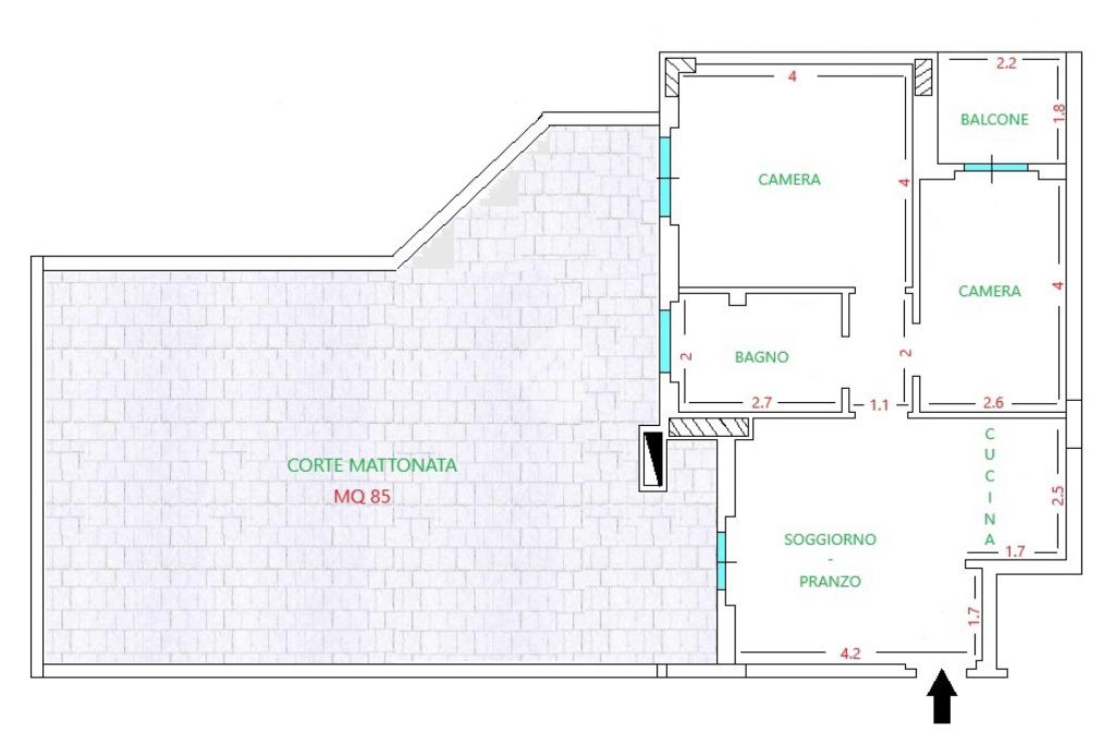 Corte mattonata di mq 85 avente accesso sia dal soggiorno che dalla camera da letto principale.