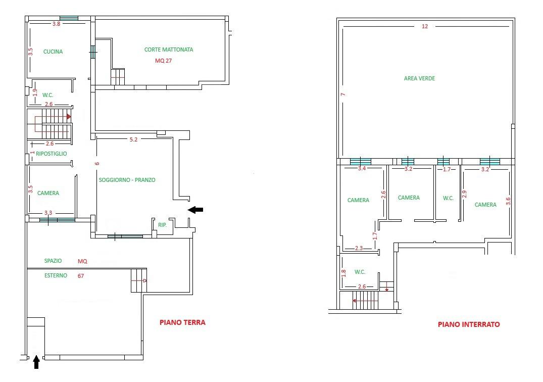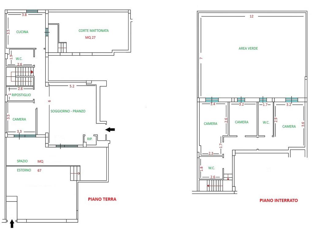 Piano terra composto da ampio e luminoso salone con corte mattonata fronte strada, cucina abitabile con accesso all'ulteriore corte mattonata pertinenziale, cameretta, ripostiglio e bagno cieco.