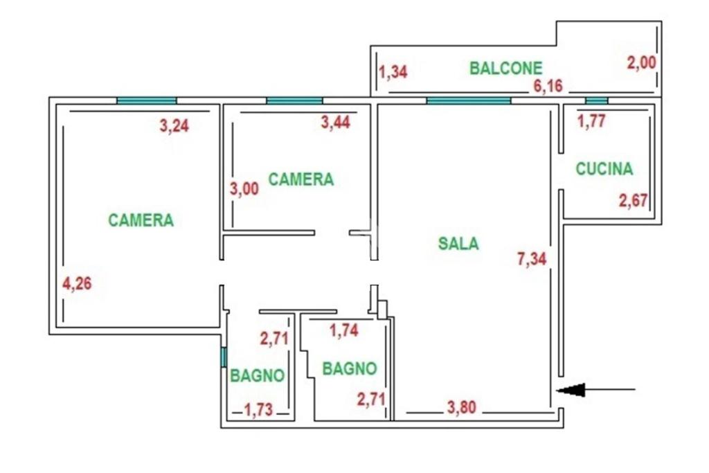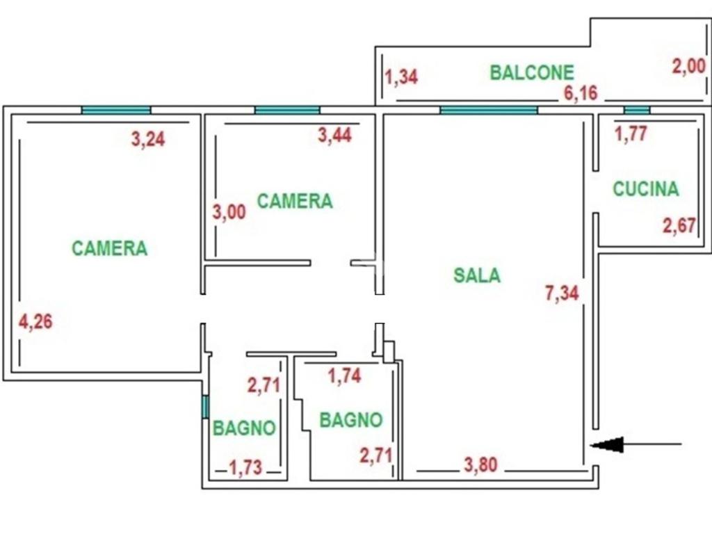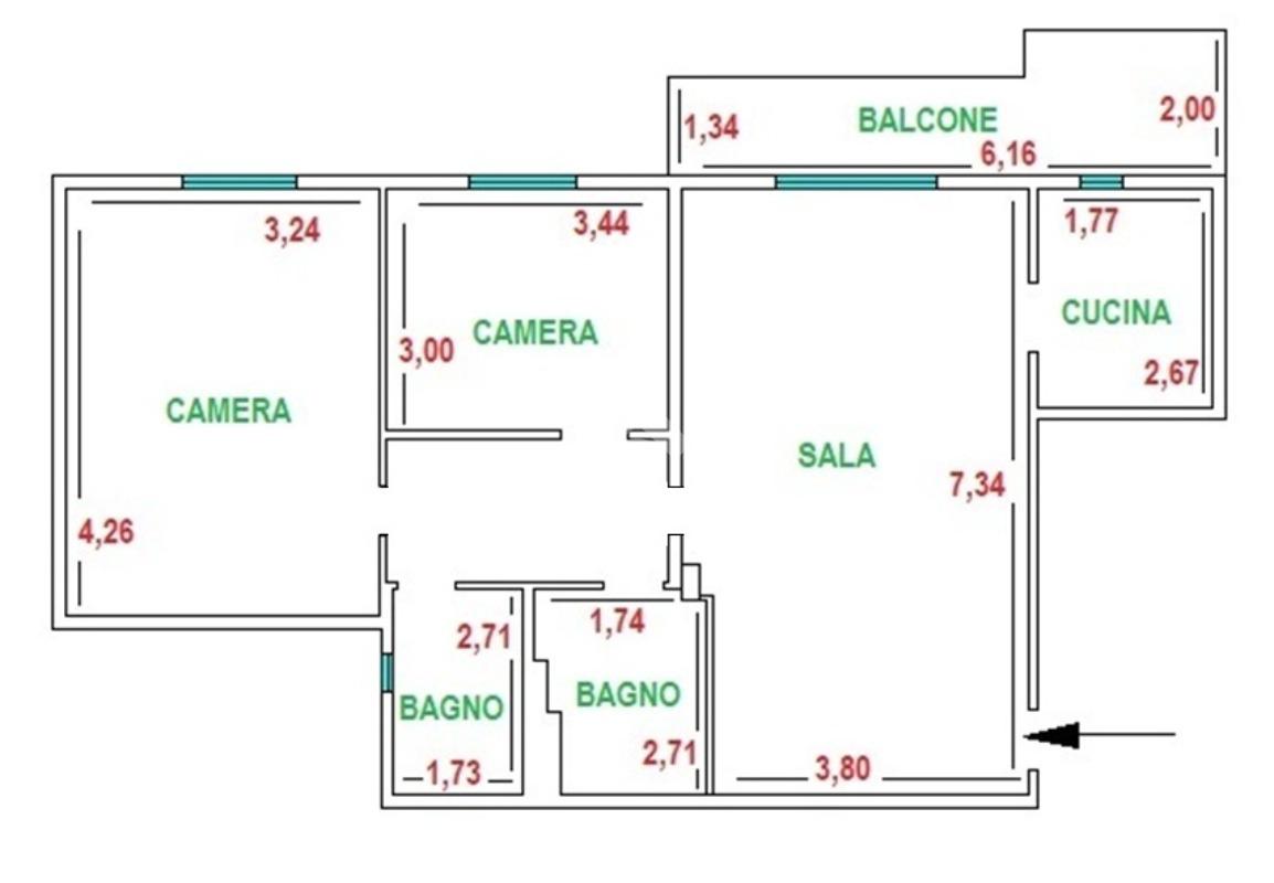 Immobile composto da ingresso, soggiorno-pranzo, cucinotto, camera padronale, cameretta e doppi servizi di cui uno con finestra. Balcone pertinenziale di circa mq 9.